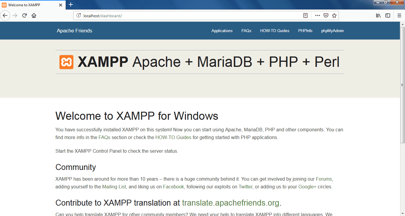 In Windows systems c:/xampp/xampp-control.exe ->Right click ->Start it in Adminstration mode -> you will get XAMPP control panel -> find 'Apache' Click on start button -> find MySQL Click on start button. This much server setup is enough, to run application.