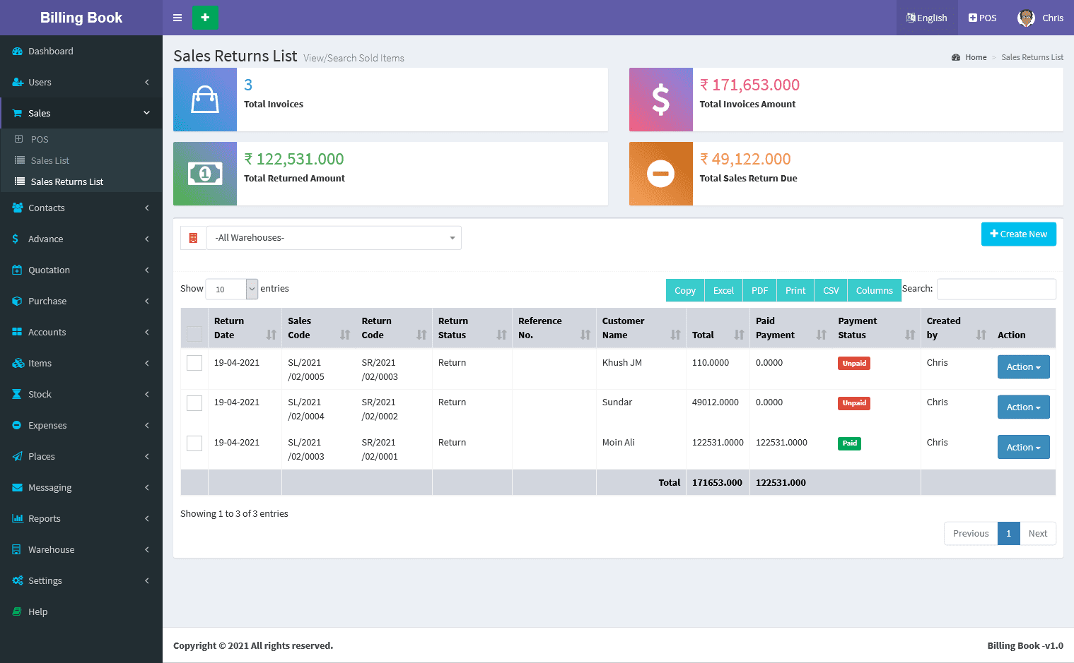 Billing Book is a PHP based web application software, where user can track and manage Items & Stock, Suppliers, Customers, Items Categories, Sales Invoice, Purchase Invoice, users and get all the reports which are require to your office with many more features. You can create any number of Warehouses and Users.